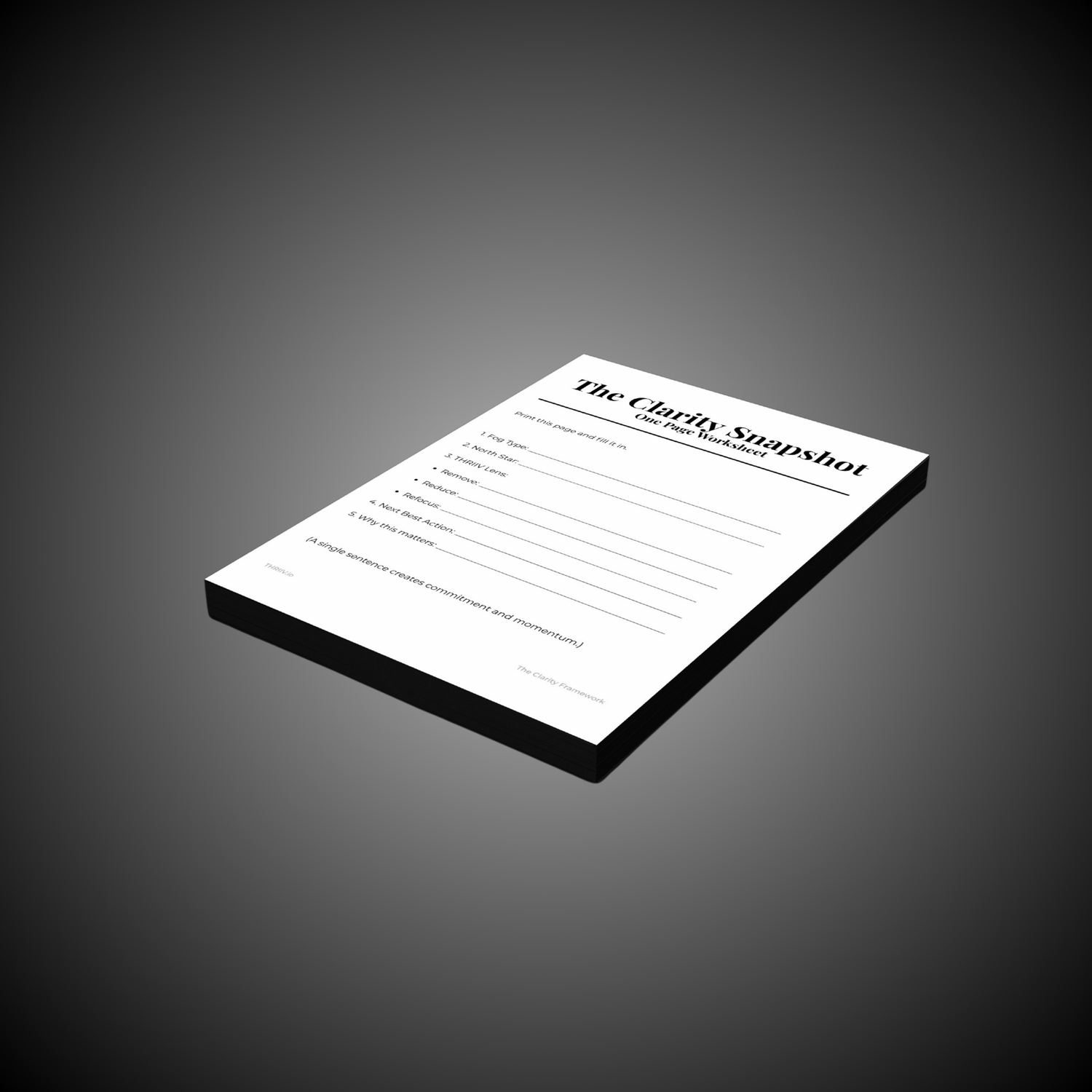 A simple, guided exercise you can complete in minutes to regain focus, reset your priorities, and align your next steps. Use it anytime you feel stuck, scattered, or unsure what to do next.